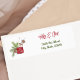 This holiday foliage return address label has a Nordic folk art style, watercolor art illustration of a red mug of hot cocoa, horse and snowflake Christmas cookies, and evergreen branches, next to your name and address in red and green script text on white. Perfect for all your winter mail, cards, letters, and packages. Matching Christmas card available.