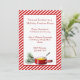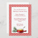 Festive fondue holiday party invitation done in a red and white candy cane striped background. A white text area is decorated, at the bottom, with graphics of a pine branch and a fondue pot. Text in red is fully customisable to suit your party needs. Great party idea for a cold night.