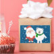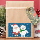 Cute picture of Santa and a polar bear arm in arm, smiling, while snowflakes fall on a blue background, is featured on this holiday sticker. Great to use for those special holiday mailings, crafting, decorating and more!