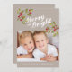 A modern "Merry & Bright" greeting is front and centre in this design that incorporates fun typography, and a whimsical floral and berry holiday garlands for a lovely look that's sure to please.