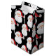 Holiday gift bag shown in black with a festive Christmas Santa print.