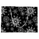 Holiday gift bag is shown in a festive winter snowflakes print design.