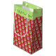 A generic gift bag design that can be customised for any occasion. This design features a pattern of green gift boxes with pink and red bows, on a red background. The coordinating green banner has text that can personalised with your message. The green banner and red background colours can be customised with colours of your choice. Gift bags are available in large, medium and small.