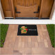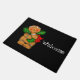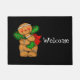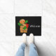 Holiday doormat shown with a black background with a cute gingerbread man welcome print.