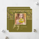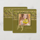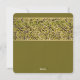 A sophisticated gold and green ribbon overlaid with a framed photo window on an olive green background creates this stunning design.