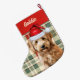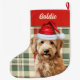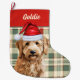 Holiday Goldendoodle Plaid with Dog's Name Large Christmas Stocking