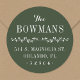 Custom printed holiday return address labels personalised with your family name and address or other custom text. This modern rustic design has a simple floral branch divider with mixed fonts on a green background. Use the design tools to choose any background colour, edit the text fonts and colours or upload your own photos to create a one of a kind round return address sticker.