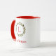 Custom printed Christmas coffee mugs personalised with your family name and monogram initial or other custom text. This design features a simple watercolor wreath of greenery and holly berries, perfect for the holiday season. Use the design tools to choose any background colour, edit the text fonts and colours or upload your own photos to create a one of a kind personalised Christmas gift for family and friends.