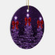 Elegant Merry Christmas / Happy Holidays Festive Ornament, Purple Trees with bows.