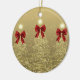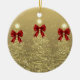 Elegant Merry Christmas / Happy Holidays Festive Ornament, Gold Trees with bows.