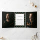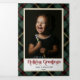 Holiday Greetings Typography on Plaid Multiphoto Tri-Fold Holiday Card