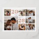 This beautiful modern Christmas card features seven photos in a grid layout, with the year in rose gold foil, your custom holiday greeting (shown with "warmest wishes"), and your family name in the remaining squares. A cool minimalist holiday card design that showcases your favourite square and horizontal/landscape-orientated photos.