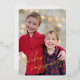 Design features your favourite full portrait photo with foil overlay text reading Holiday Happiness in an elegant, festive style. The back side has room for one more photo, a short holiday message, and your family's names. An elegant, simple and sweet holiday card for family and friends to enjoy.