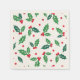 This paper napkin is shown in Ecru with a festive Christmas holiday holly print.