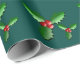 Wrapping paper shown with a deep evergreen colour background with a festive holiday holly print. Customise this item or buy as is.