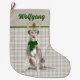 Holiday Irish Wolfhound and Plaid with Dog's Name Large Christmas Stocking