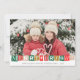 merry and bright, modern photo card design with elegant white detail on a family photo. The text and colours can be personalised.