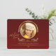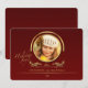 A burgundy background with a regal, gold photo window and gold accents. The words "Holiday Joy" are preprinted.