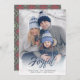 a simple Joyful script in a simple calligraphy style. This Christmas Photo Card has a white border with a blurred feathered effect and the word Joyful is cutout. Your photo or picture fits underneath this graphic to create an overlapped effect. With an elegant Nordic snowflake pattern on the backside in a grey background. This design features Christmas holiday joyful red green, elegant trendy script calligraphy, simple minimalist script typography, modern family elegant cute, clean trendy full bleed photo, classic traditional 1 one photo, hand-lettered script calligraphy, modern elegant simple trendy, picture white text overlay, minimal Christmas holiday photo card