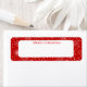 A festive Christmas holiday red and white snowflakes print is shown on this return address label.