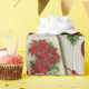 The paper is adorned with various elements that evoke a classic Christmas feel. Prominently displayed are vintage-style Christmas cards and postcards, some featuring winter scenes like snow-covered landscapes with pine trees, and others showcasing traditional holiday flora like poinsettias in vases.