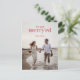 A fun holiday pun postcard to share the news of your elopement! we merry'ed is a cute way to announce your marriage with bold text and a picture of the two of you. share the rust coloured headliner with your family and friends to make the holidays a little more special
