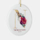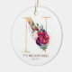 Beautiful burgundy red flowers and greenery gold monogram ornament with the couple or family photo on the backside.