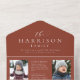 Give the annual family newsletter holiday card an elegant glow-up. This 4-photo card has room for plenty of updates beneath an elegant type treatment featuring your last name and greeting. The bottom photo can be detached from the foldable and mailable card and can live in a frame or on the fridge year round. This unique holiday card with a trendy terracotta colour scheme is the perfect way to send cheer to friends and family.