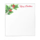 Notepad shown in white with a holiday holly print with red Merry Christmas text.