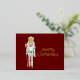 Fun Holiday postcard features a Christmas Nutcracker in pink, mint green and gold combo on dark red background. Real foil "Merry Christmas" greeting is customisable