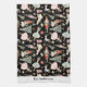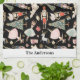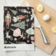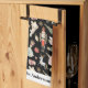 Personalised Christmas Nutcracker Kitchen Towel features nutcracker ballet characters and symbols on black background with custom name or family name of holiday greeting personalisation.