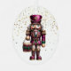 This holiday metal ornament is shown with a festive Christmas nutcracker print.