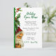 Invite your guests to your holiday open house in grand style with this beautiful invitation. The design includes a green glitter edge with vintage Santa Claus and holly and berry elements. Edit the text fields with your party details and you're ready to send them out to all your recipients. Matching envelope available in two sizes. 3.5 x 5 invitation fits in an A2 envelope. If you change this invite to a larger size the A7 envelope will fit up to a 5 x 7 invitation.
