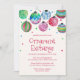 This holiday ornament exchange party invitation card is perfect for a festive holiday event. The watercolor design features dangling colourful christmas baubles with red green and blue confetti.