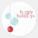 This fresh clean modern holiday sticker design features ice blue and red holiday ornaments.