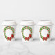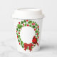Holiday paper cups is shown here with a festive christmas holly wreath and cardinal print.