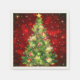 Holiday paper napkin shown in the standard cocktail size with a festive christmas tree print.