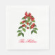 Custom name paper napkin standard luncheon size is shown in white with a festive holiday holly print design shown with a sample name.