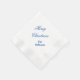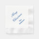 Holiday paper napkin shown in white with blue holiday message of Merry Christmas.