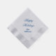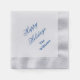 Holiday paper napkin is shown in silver with blue holiday message.