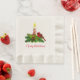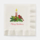 Holiday paper napkins standard coined luncheon size shown in Ecru with a festive Christmas candle and red cardinal bird print.