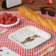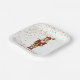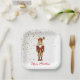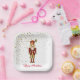 Holiday paper plate is shown in white with a festive Christmas nutcracker print.