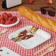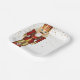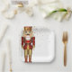 Holiday paper plate is shown in white with a festive Christmas nutcracker print.