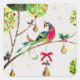 Holiday sticker shown with a festive partridge in a pear tree print.