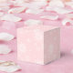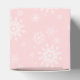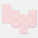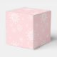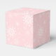This holiday party favour box is shown in a festive Christmas holiday blush pink and white snowflakes print.