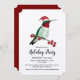 Cute holiday party invitation featuring a ruby-throated hummingbird wearing a Santa hat on a white background. Just add your name! The font size and colour can be changed by clicking on "Edit this design".