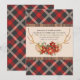 Holiday Celebration Invitation | Oh Deer Woodland Antlers - pink deer ears and antlers with spray of poinsettias on a lumberjack red plaid flannel with old barn wood inset. Customise text. This is a holiday non denominational greeting suitable for family or corporate to use. All Original Artwork © by WhimsicalArtwork™ This is part of a mix and match coordinated Holiday Collection.
