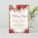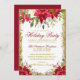 Holiday Party Red Gold Glitter Poinsettia Floral Invitation