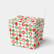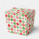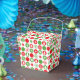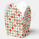 Party favour box is shown with a Holiday colours trees and snowflakes print.