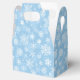 Party favour box is shown with a Holiday snowflakes print.